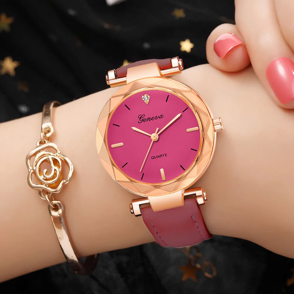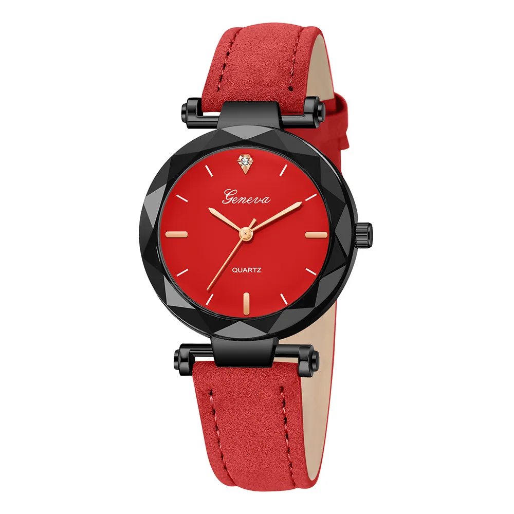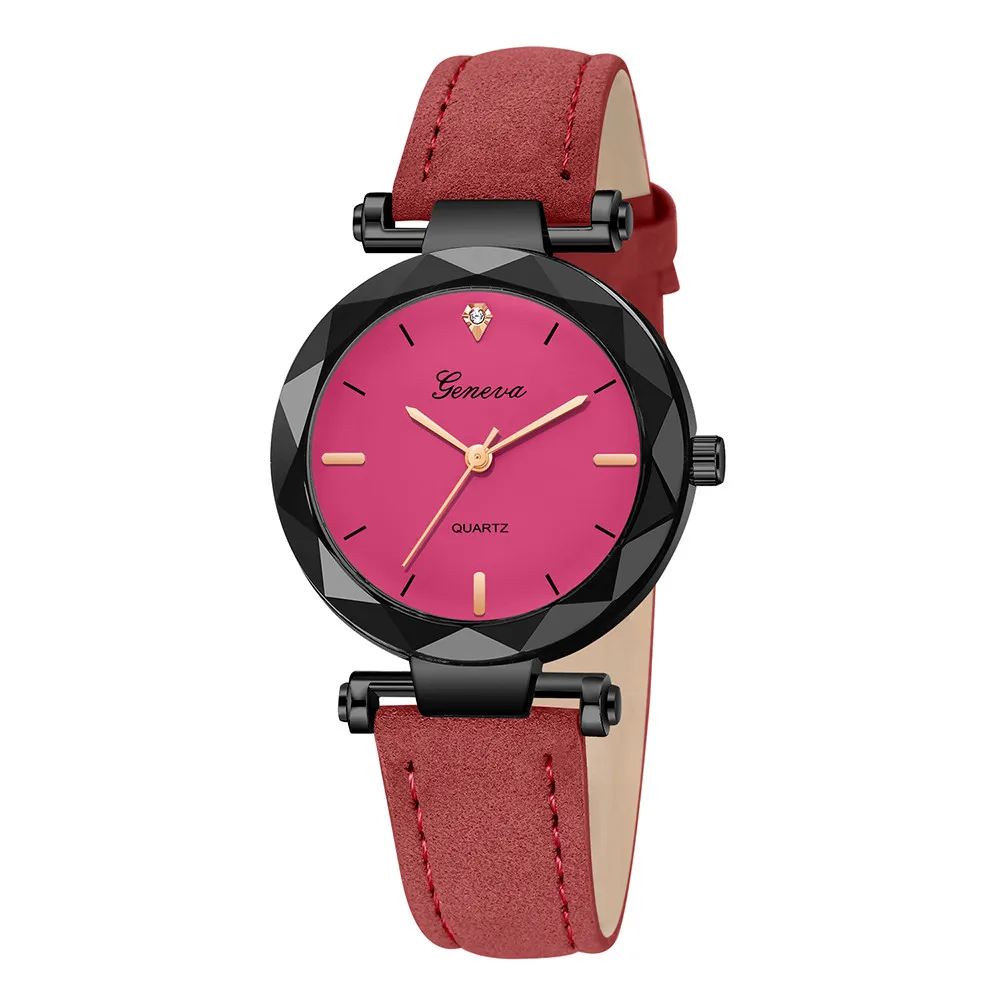 Новая мода Женева для женщин кожаный ремешок Кварцевые аналоговые наручные часы