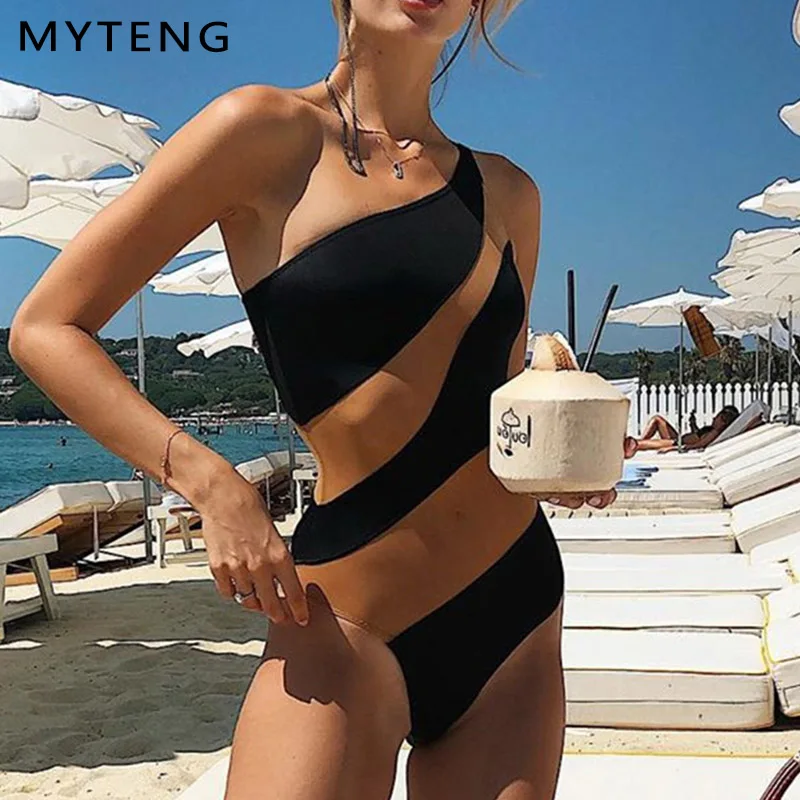 Сексуальный прозрачный сетчатый слитный купальник бикини 20220 на одно плечо, купальник для женщин, облегающий купальник из кусков, купальный костюм, монокини