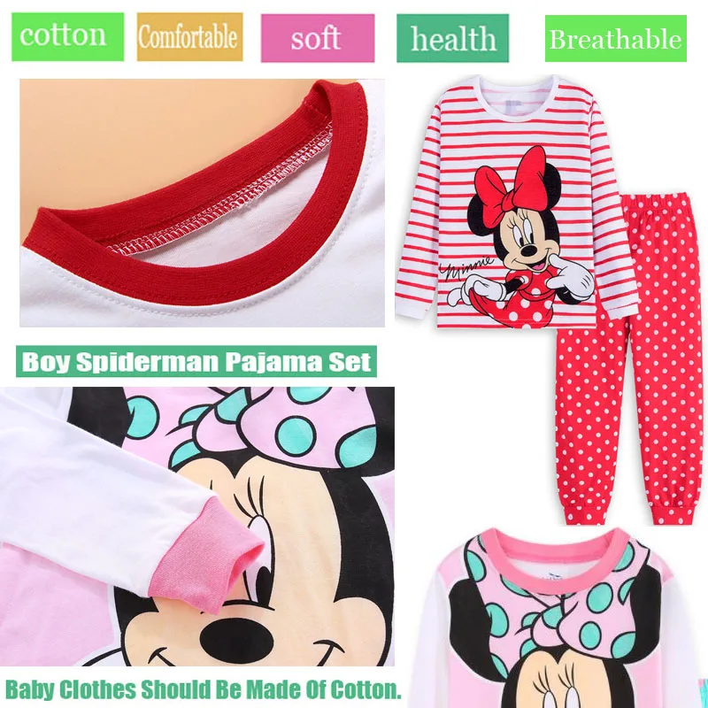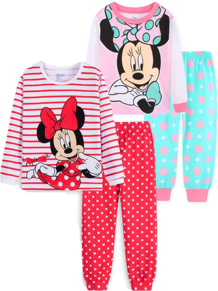 Детский пижамный комплект, пижама Минни для маленьких девочек, комплект из 100% хлопка, Детский комплект из 2 предметов с длинными рукавами, домашний комплект с рисунком для малышей