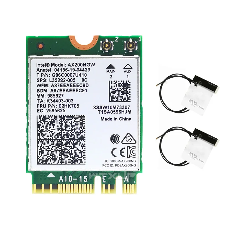 Intel AX200 также поддерживает Bluetooth 5,0.Максимальная пропускная способность при поддержке Wi-Fi 6 AX200 является скорейшее 2,4 Гбит/с (160 МГц),Intel®AX200NGW может обеспечить гигабитную скорость загрузки 1 и значительно улучшить ваш опыт подключения дома, работы или на ходу.Модель: Intel AX200NGW