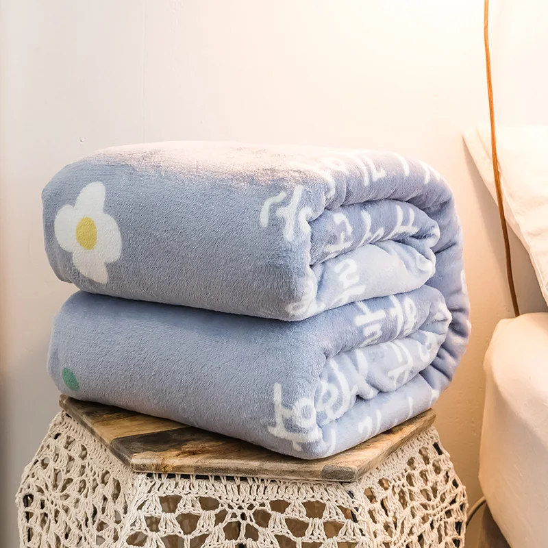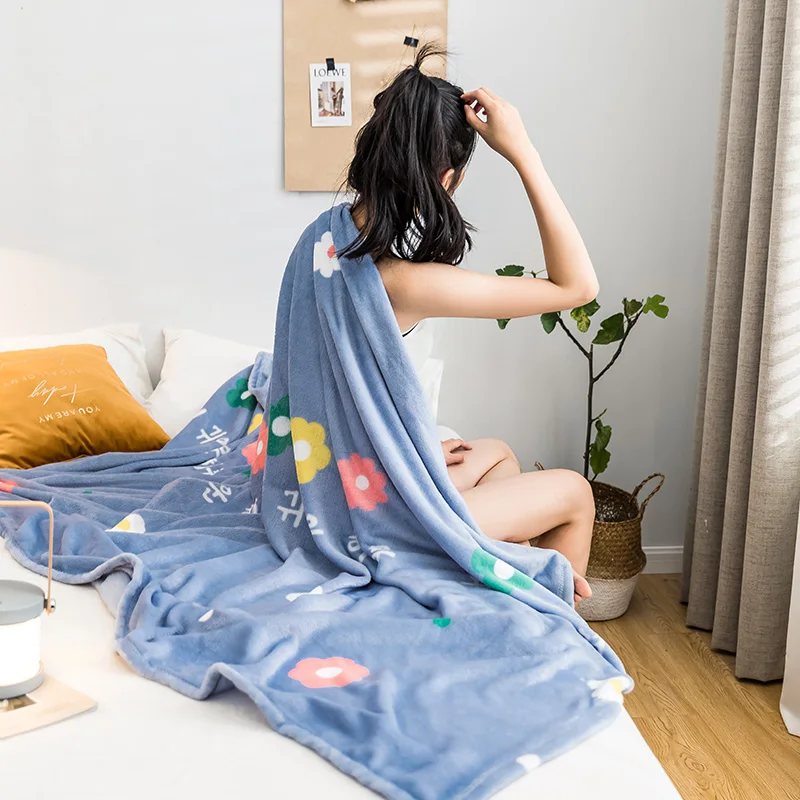 LREA High Density Warm Flannel coral Blanket adult blue flowers For sofa Throw Travel Soft For Beddding