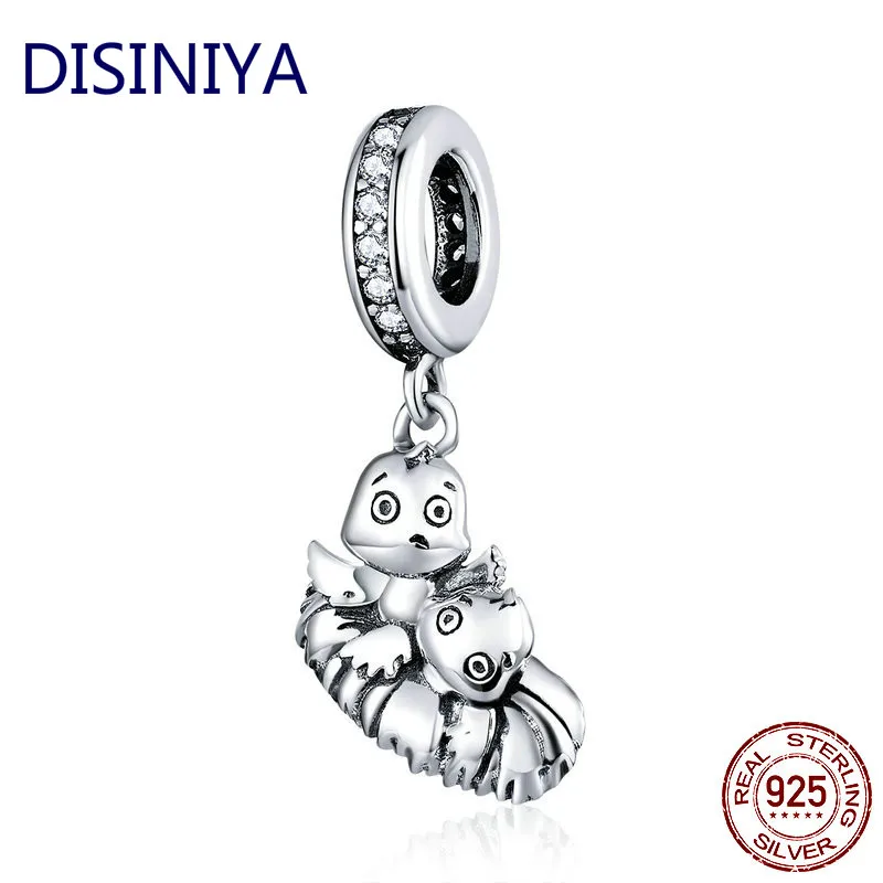 Настоящее серебро 925 пробы, сияющая сова, серебро, оригинальный Шарм для бренда, сделай сам, ювелирное изделие, сделай сам, браслет для женщин и девушек, подарок ZSCC281607