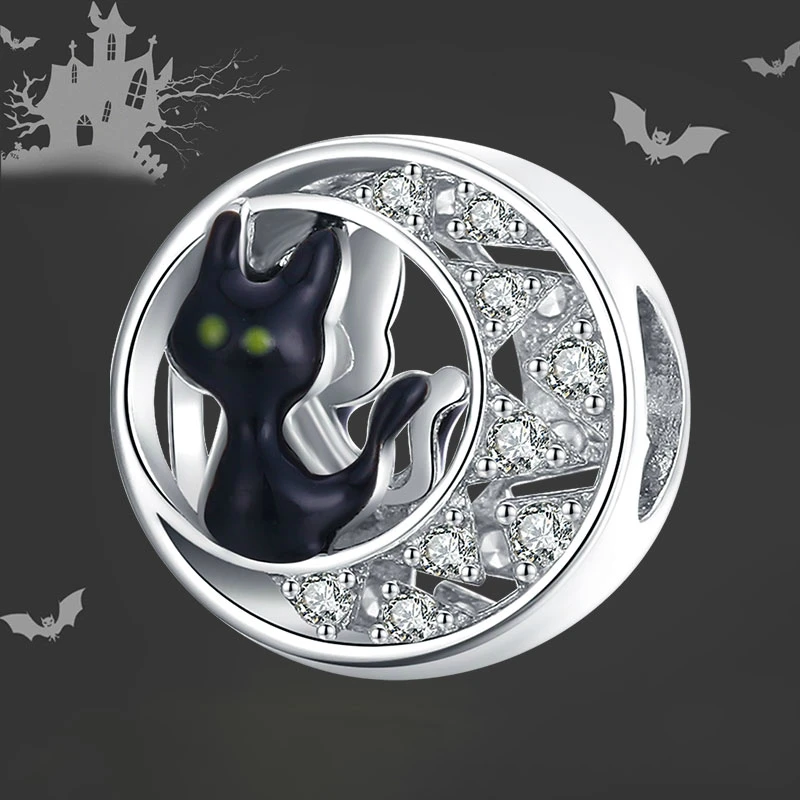 DISINIYA, Стерлинговое Серебро 925 пробы, оригинальное очарование, Хэллоуин, Черный кот, CZ серебро, для брендовых ювелирных изделий, сделай сам, для женщин, девушек, ZBSC00325