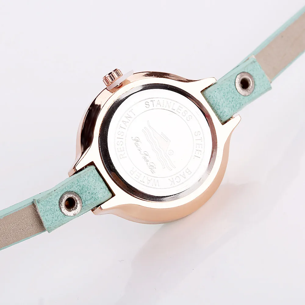 Women Fine Leather Band Winding Analog Quartz Movement Wrist Watch