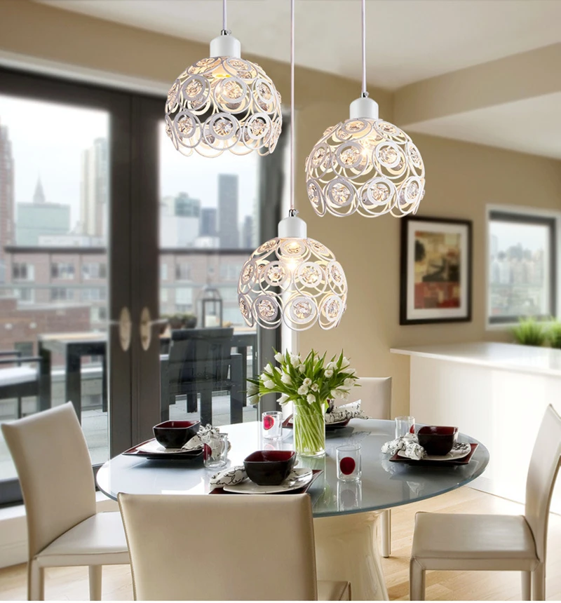 Современный E27 Белый креативный минималистичный потолочный светильник с кристаллами, простая потолочная лампа для спальни, простая Европейская винтажная железная лампа