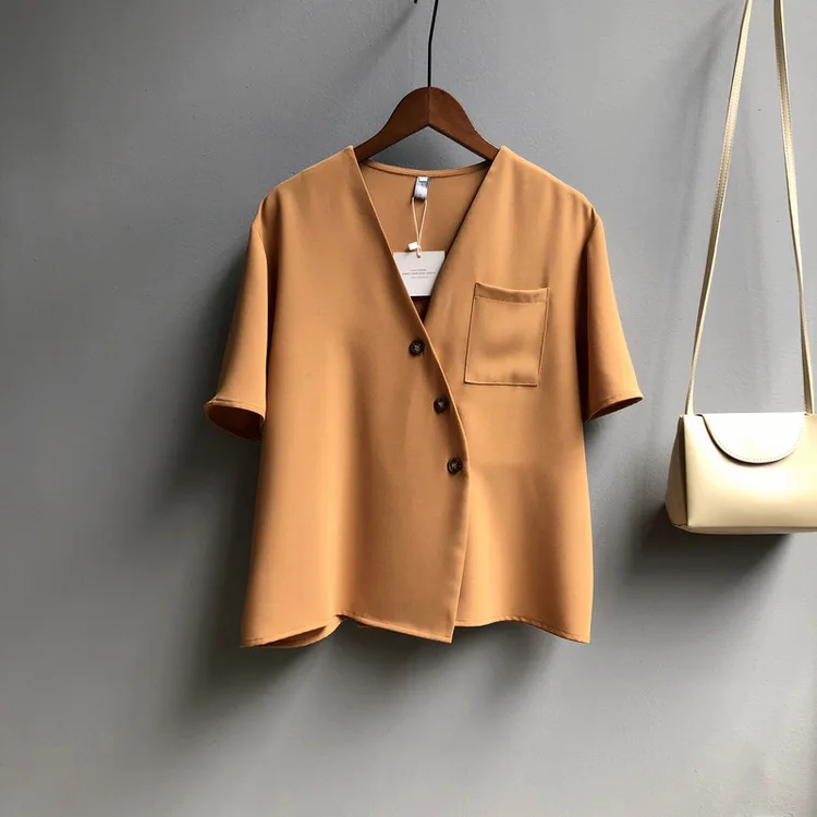 Женская блузка с пряжкой и v образным вырезом летние рубашки коротким рукавом