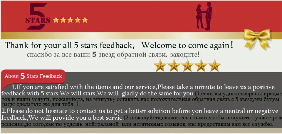Пожалуйста, не оставляйте отрицательные (1-2 звезды) или естественные отзывы (3 звезды), прежде чем связаться с нами.
