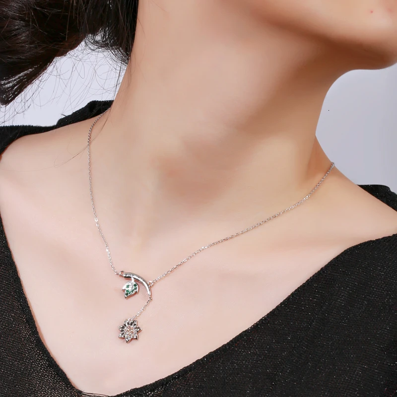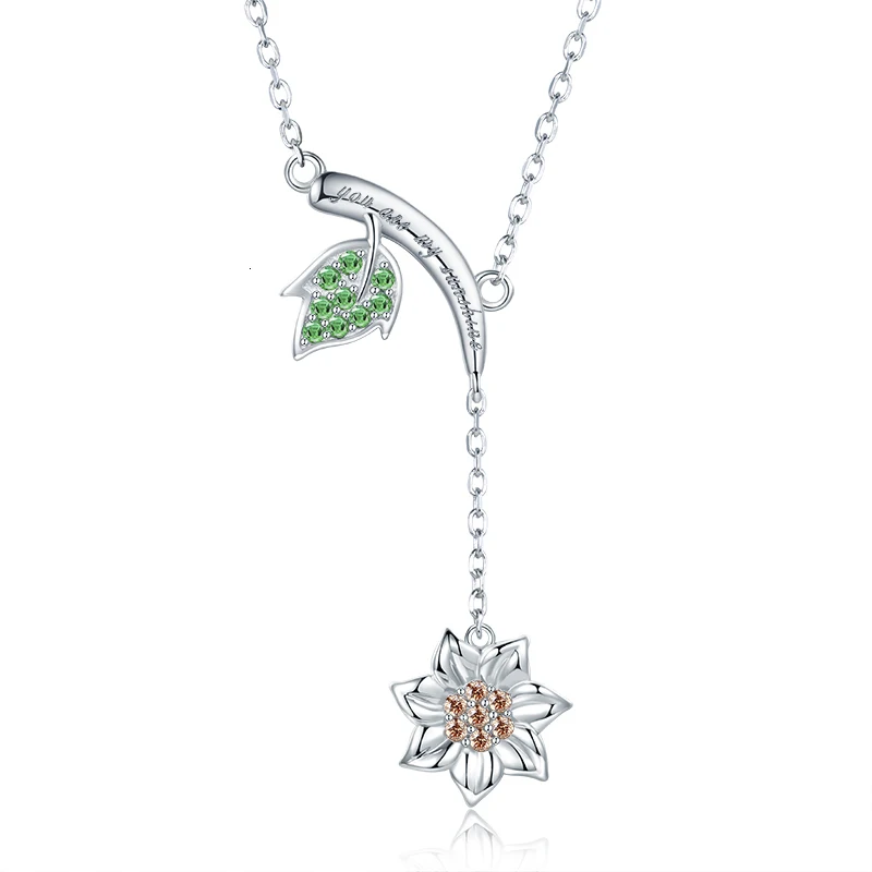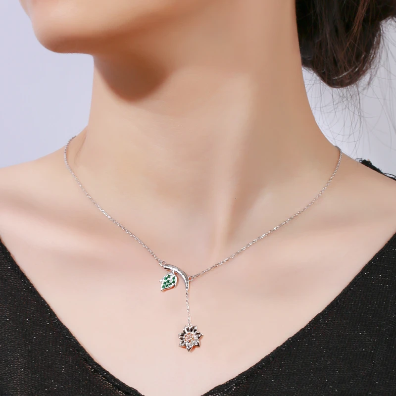 Женское Ожерелье из стерлингового серебра 925 пробы MANBU, весенне-летняя коллекция, ожерелье из подсолнечника с зелеными листьями, лучший подарок для девушки