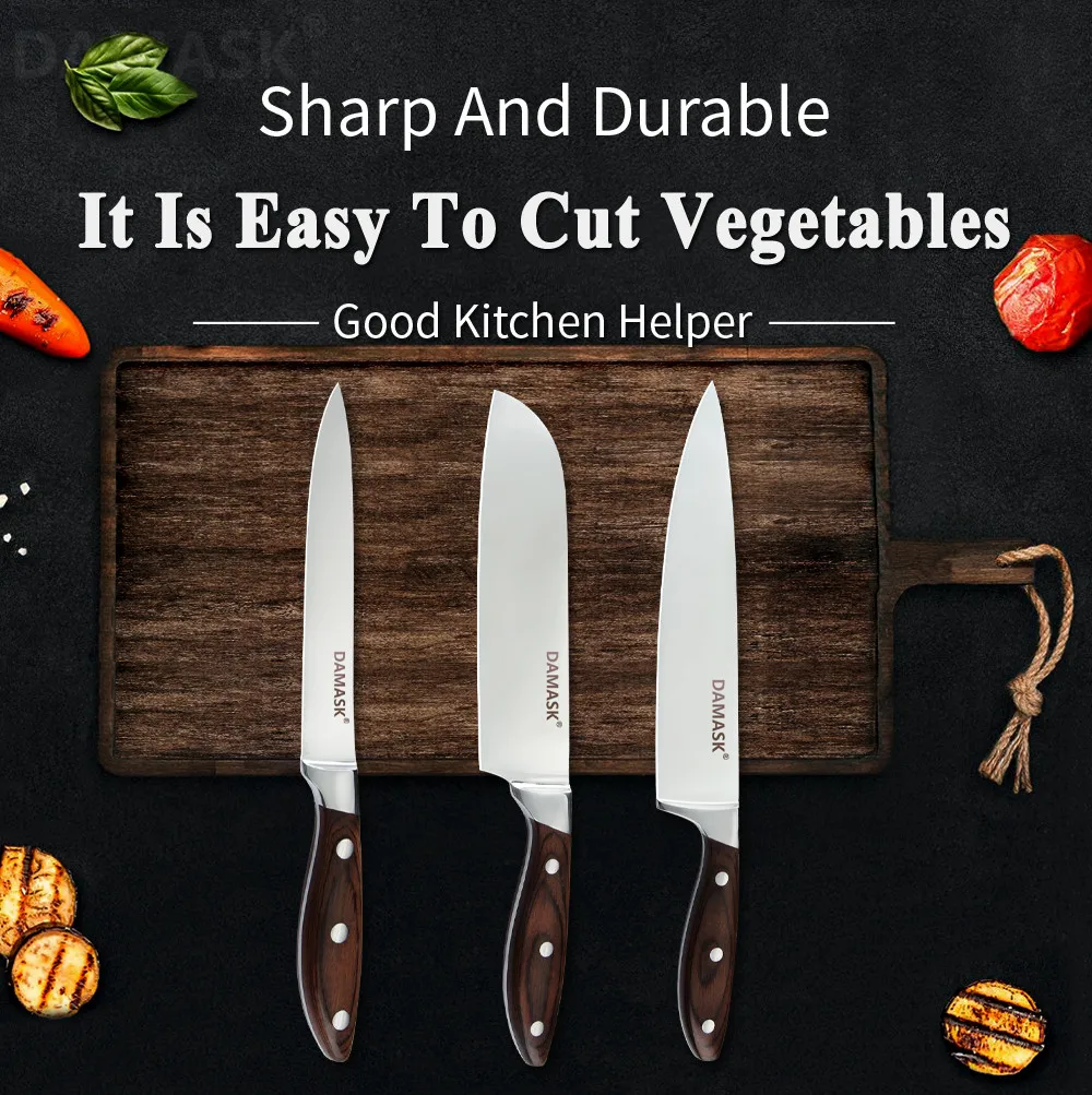 1 * 8-дюймовый поварский Ножи Нож Santoku 1*7 дюймов Универсальный нож 1*5 дюймов