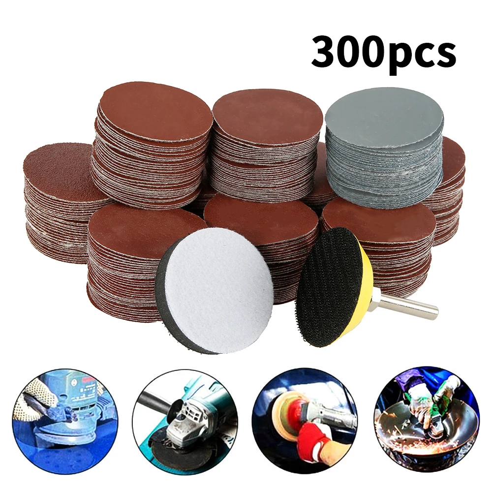 300 шт. 80/180/240/320/800/3000 шлифовальный диск набор 2 дюйма 50 мм + Петля шлифовальная площадка с 3 мм хвостовиком для полировки чистящих инструментов