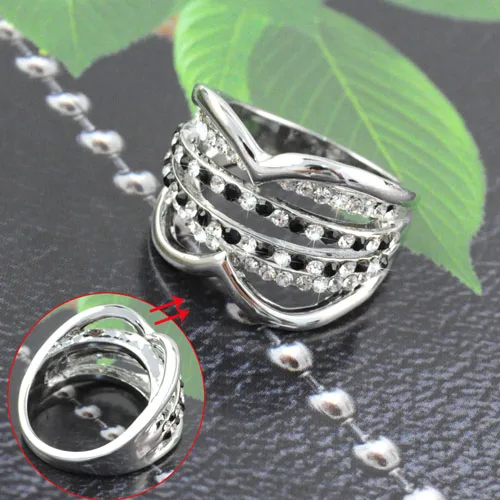 Модные ювелирные изделия для женщин Серебряный цвет с черными стразами дизайн дамы часть ювелирные изделия кольцо, rn-456 US $5,76