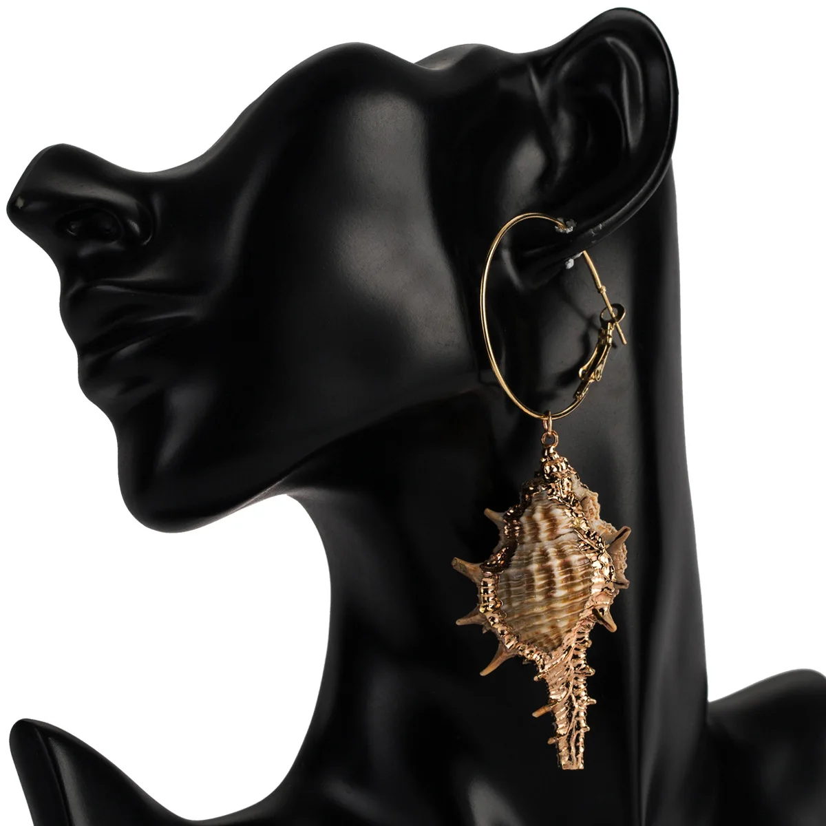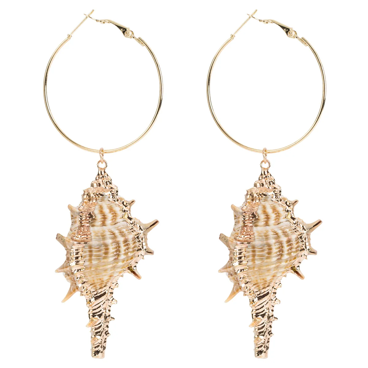 Женские серьги-подвески в виде ракушек с большим золотым крючком индийские