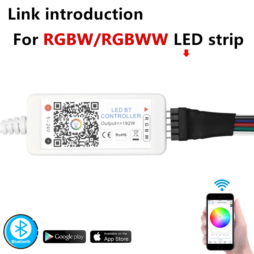 The rgbw Bluetooth controller can be used on a 5pin rgbww/5pin rgbw led strip,4pin rgb led strip. They are universal controllers. W in rgbw can represent warm white or white.