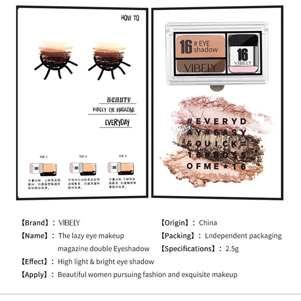 Brand NameNoneModel Number121TypeEye ShadowSizeFull SizeQuantity1 pcsWaterproof / Water-ResistantYesIngredientMineralsNET WT5 gCountry/Region of ManufactureChinaBenefitLong-lastingBenefitEasy to WearBenefitNatural FactorsBenefitWaterproof / Water-ResistantSingle color/multi-colorTwo colorsFinishLuminousFinishGlitterFinishMatteFinishMetallicFinishNatural FactorsFinishSatinMeasurement unit100000015Sold insell_by_pieceEach pack1Package weight0.050Package size - length (cm)10Package size - width (cm)5Package size - height (cm)8