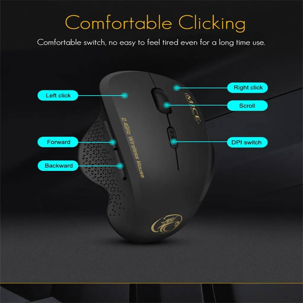 IMICE G6 портативный ПК Беспроводная Третья передача Регулируемая мышь с приемником USB игровая мышь