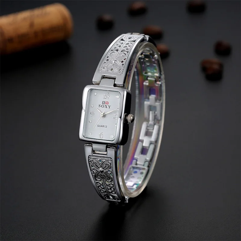 SOXY модные роскошные брендовые кварцевые часы с браслетом, женские наручные часы из нержавеющей стали, прямоугольные женские часы reloj mujer