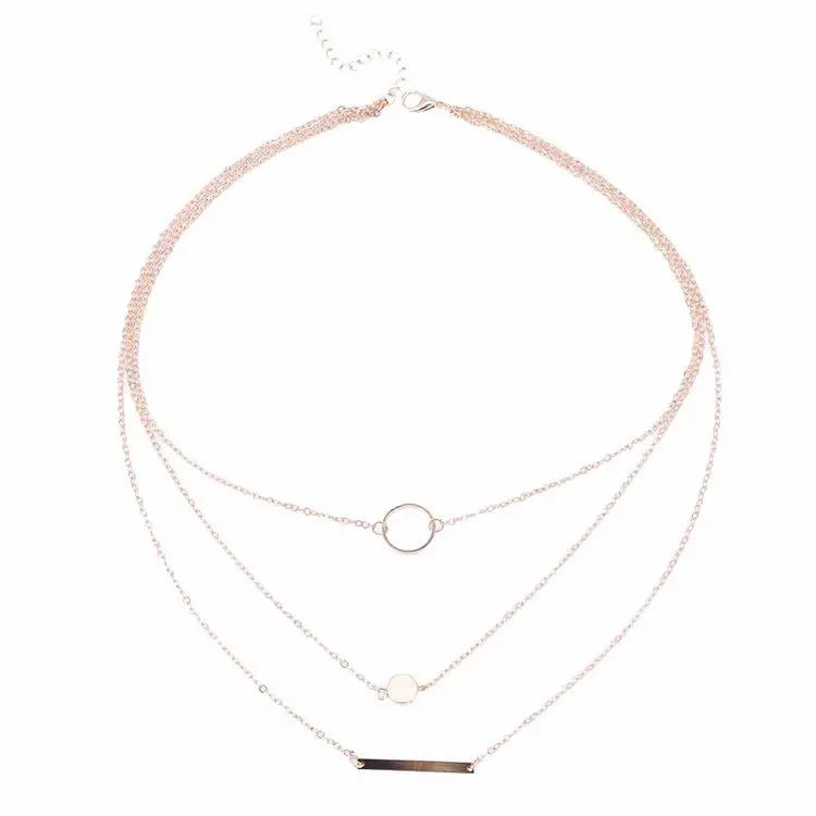 Особенности: металлический диск & бар & кольцо кулон, многослойное на ключицы цепи, вечерние ювелирные изделия