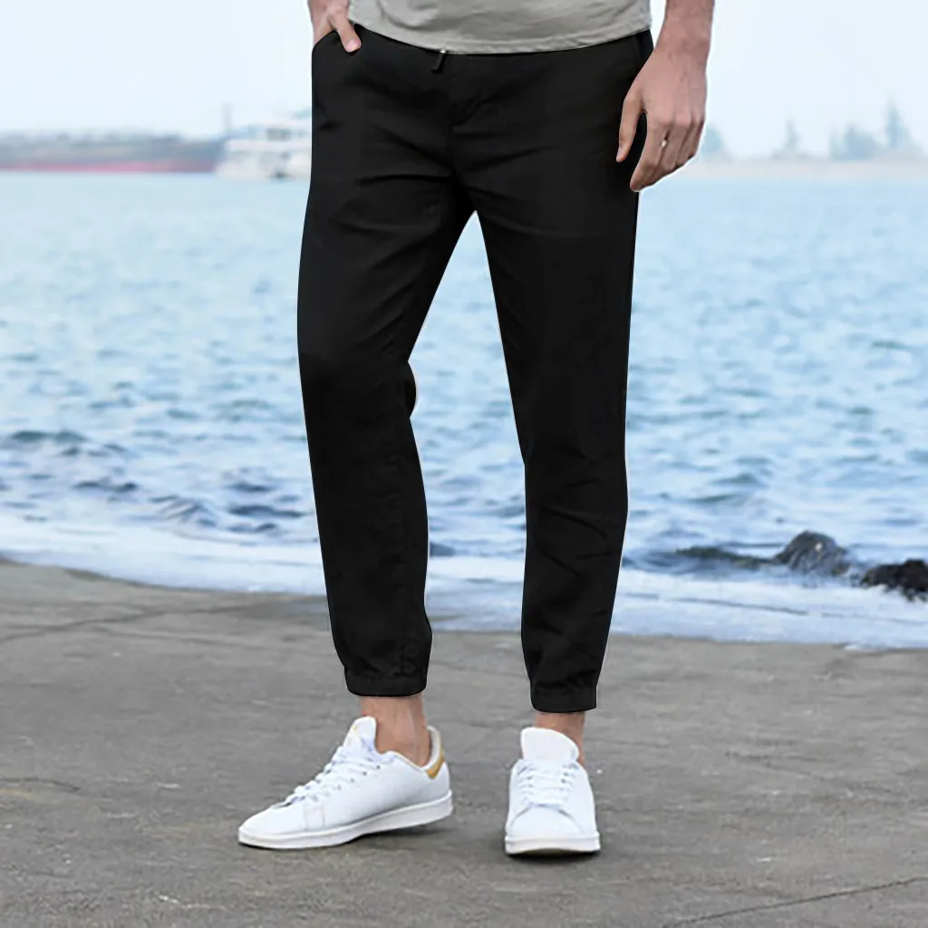 Мужская однотонная Спецодежда с карманами, спортивные повседневные брюки длиной до щиколотки