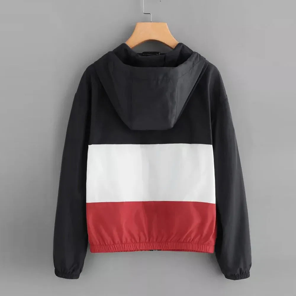 Это модное пальто имеет цвет столкновения и спортивную одежду, полный рукав и тонкий.Элегантность и простота-это фокус на дизайне, это повседневная одежда диких предметов.Легкая и неэластичная ткань. Свободный силуэт.