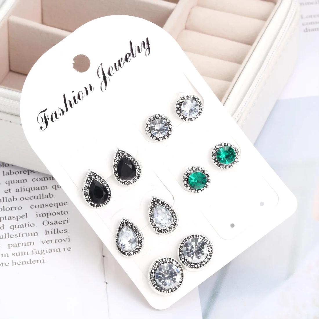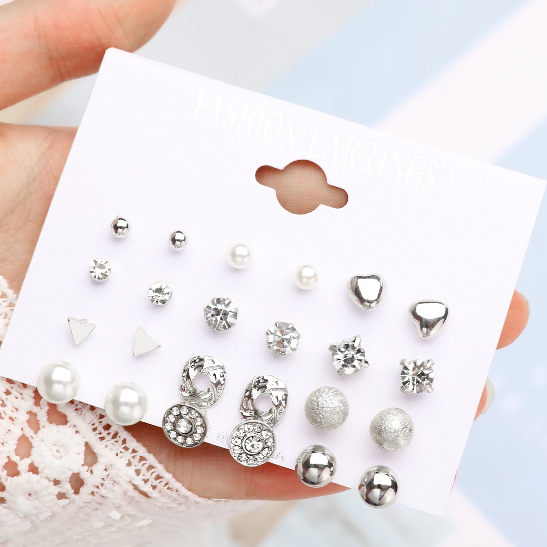Серьги Размер: 0,5 см, 0,6 см, 0,7 см Цвет: белый Цвет металла: серебристый Материал: хрусталь, фианит, сплав Включает: 1 набор (6 пар) включает