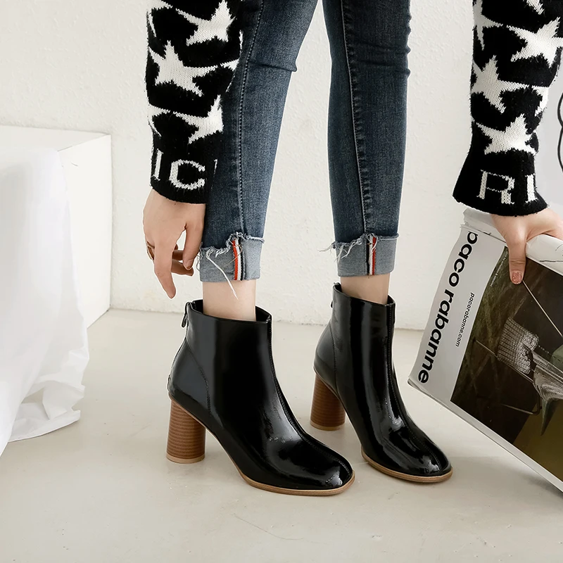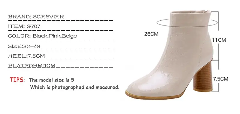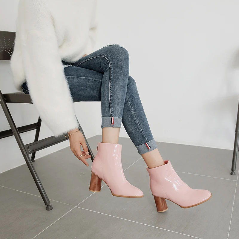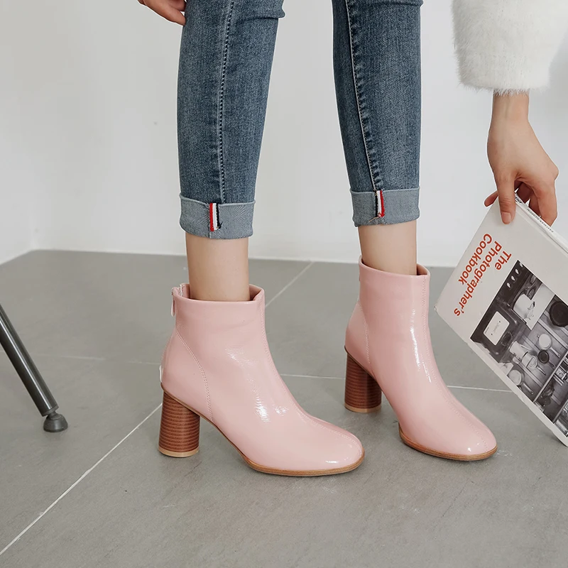 Sgesvier/Большие размеры 45, 46, 48; Обувь для осени и зимы; Яркие однотонные ботильоны из искусственной кожи; Женские розовые ботинки с круглым носком на высоком каблуке; G707