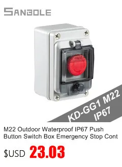 Кнопочный переключатель M22 водонепроницаемый IP67 красный 10 а с винтовой
