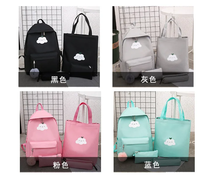 Женские школьные сумки 4 шт./компл. холст Облако водонепроницаемый рюкзак для подростка студенческие сумки милый рюкзак карманные дорожные сумки на плечо