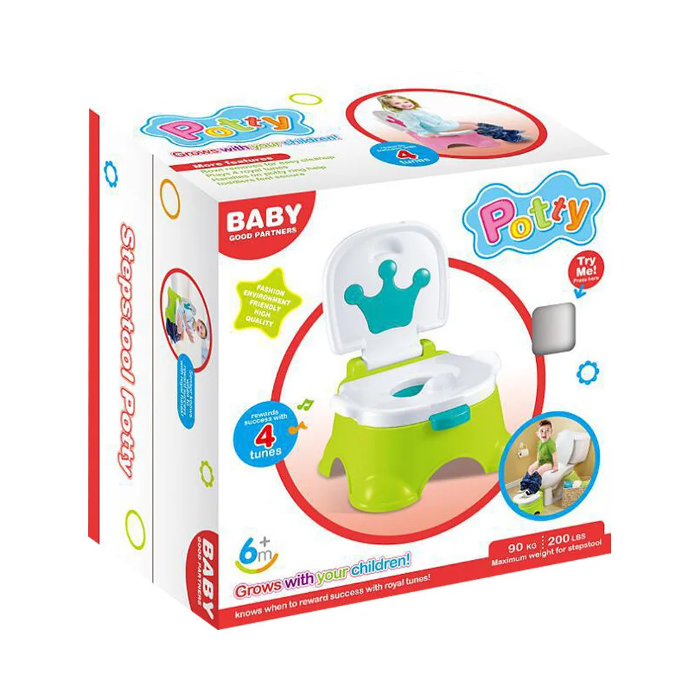 3-в-1 функция для приучения к горшку для 3 этапа: первый этап-мотивировать Вашему ребенку для приучения к горшку с помощью этого музыкального автономная сиденья, второй этап-Съемное Горшечное кольцо может быть приспособлено к стандартному сиденье для унитаза, третий этап-крышка-вниз горшок преобразуется в прочный шаг табурет или стул