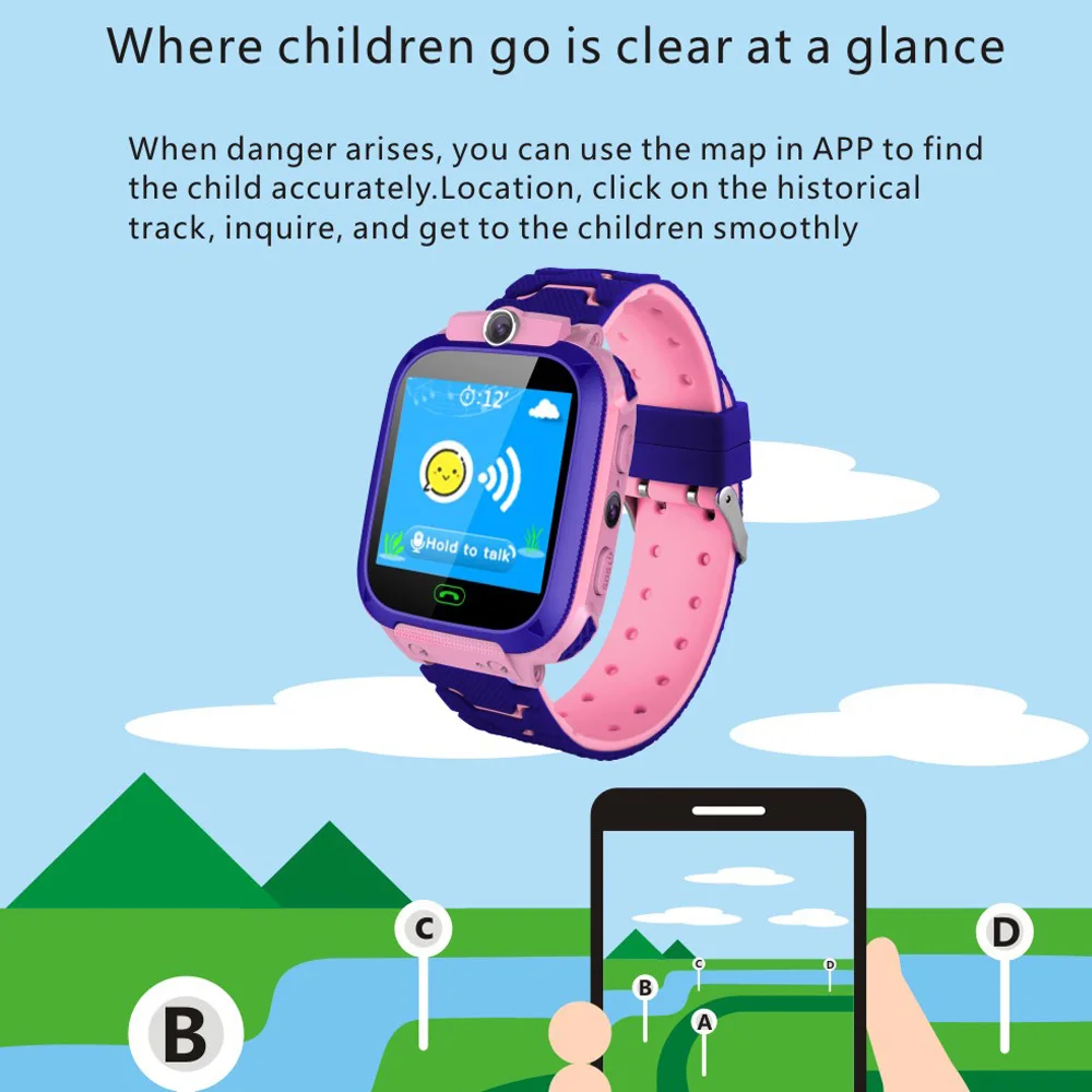 Розовый или синий сенсорный экранУмный Телефон часы для возраста 3-15, может обеспечить безопасность Ваших детей на пути в и из школы, получить связь с семьей в первый раз, в то время как они нуждаются в помощи, маленькая игра-головоломка для развлечения и обучения. Это очень образец для работы-просто нужно отсканировать qr-код и загрузить приложение для подключения к телефону.