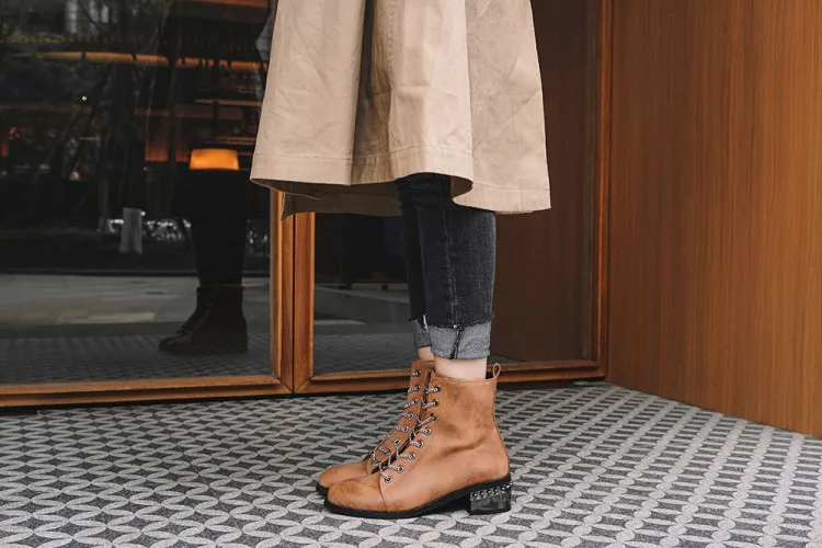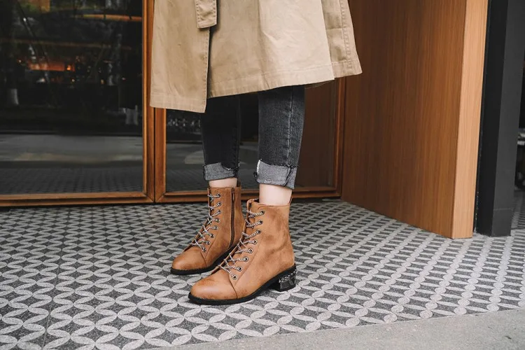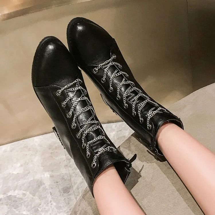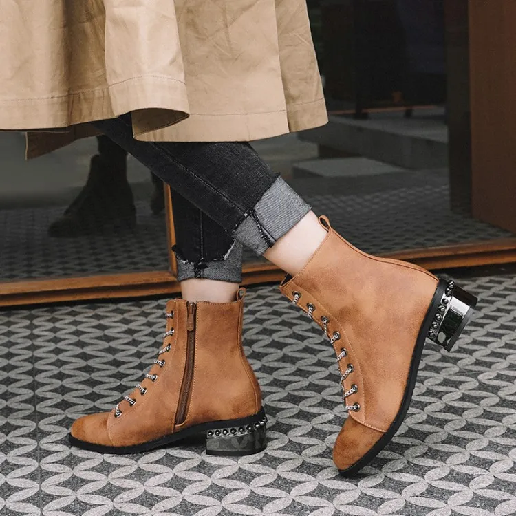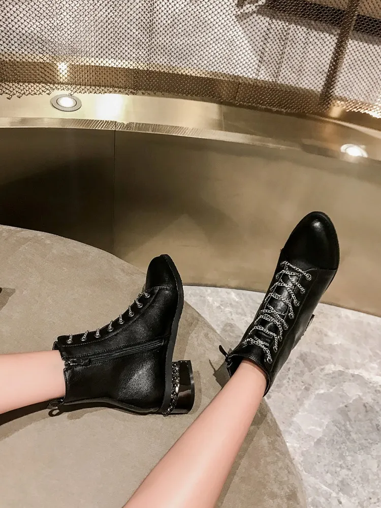 Женские ботильоны из натуральной кожи с круглым носком на массивном каблуке |