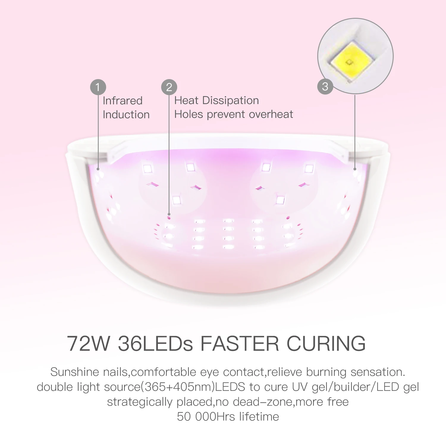 72 Вт высокой мощности, не только быстро сохнет, но и может высушить все гели для ногтей.