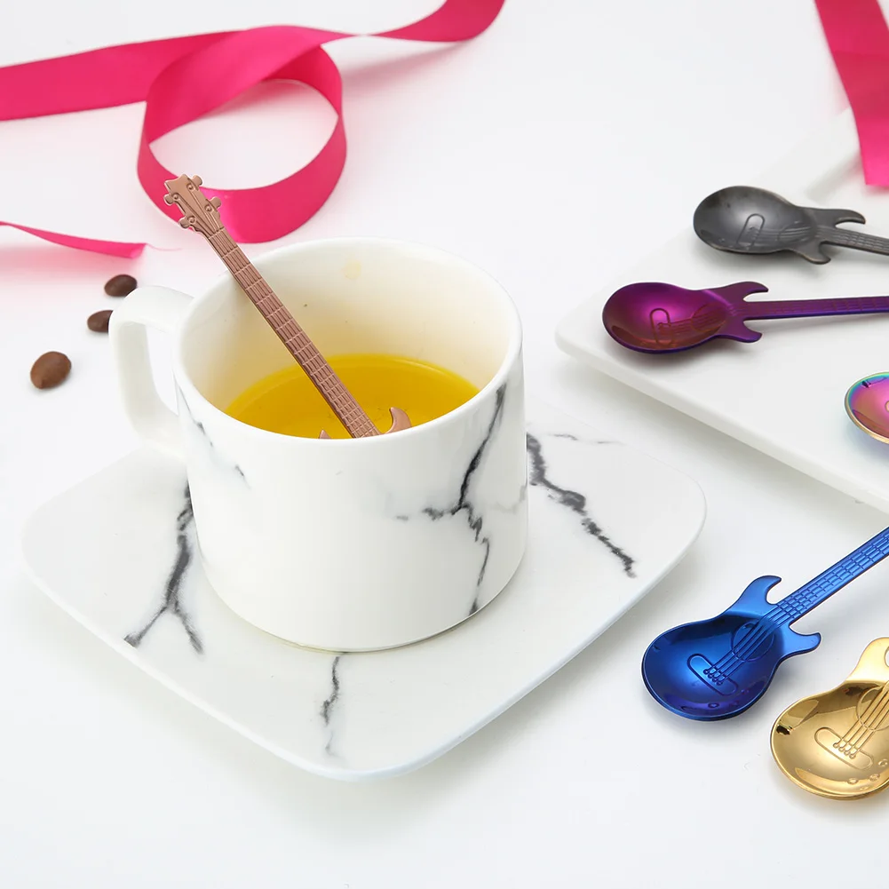 Креативная мультяшная гитарная ложка из нержавеющей стали, ложка для молока, льда, кофе, сахара, чая, перемешивания, ложка для дома, кухни, столовые ложки
