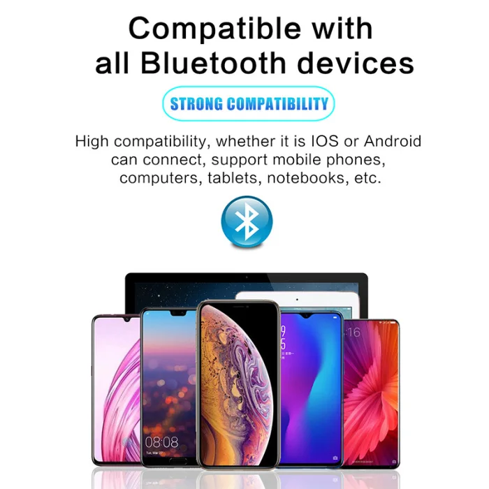 1. Support all Bluetooth-enabled audio devices, for Ios, for Android, for Huawei, for Xiaomi mobile phones, tablets, personal computers, laptops, computers, etc.