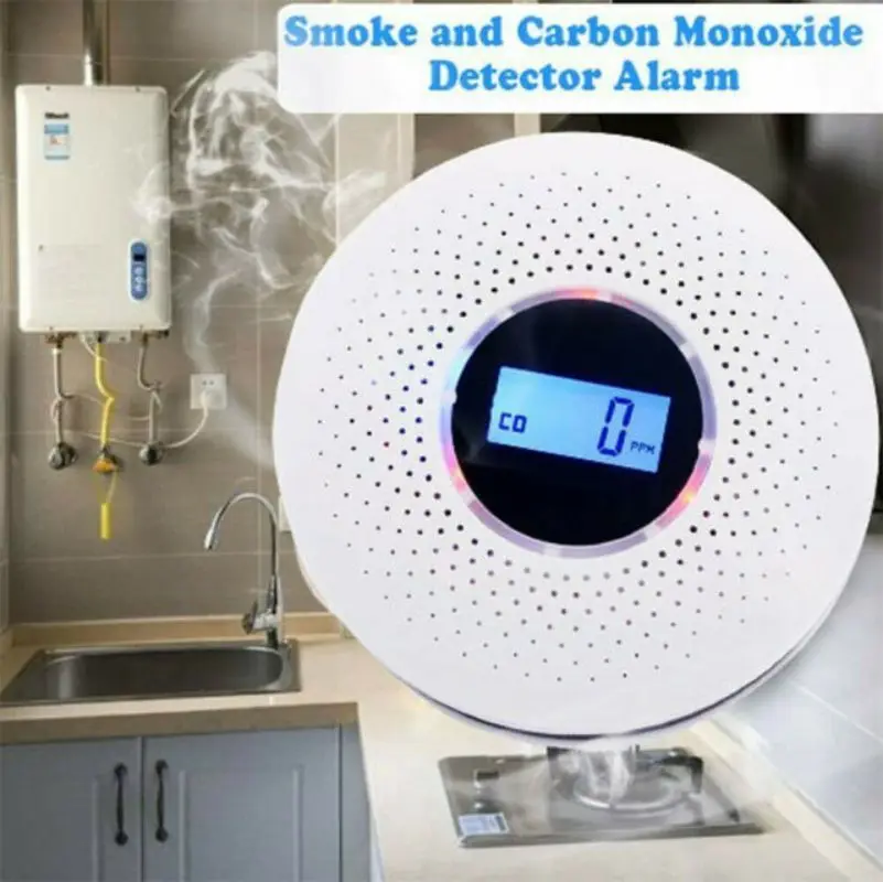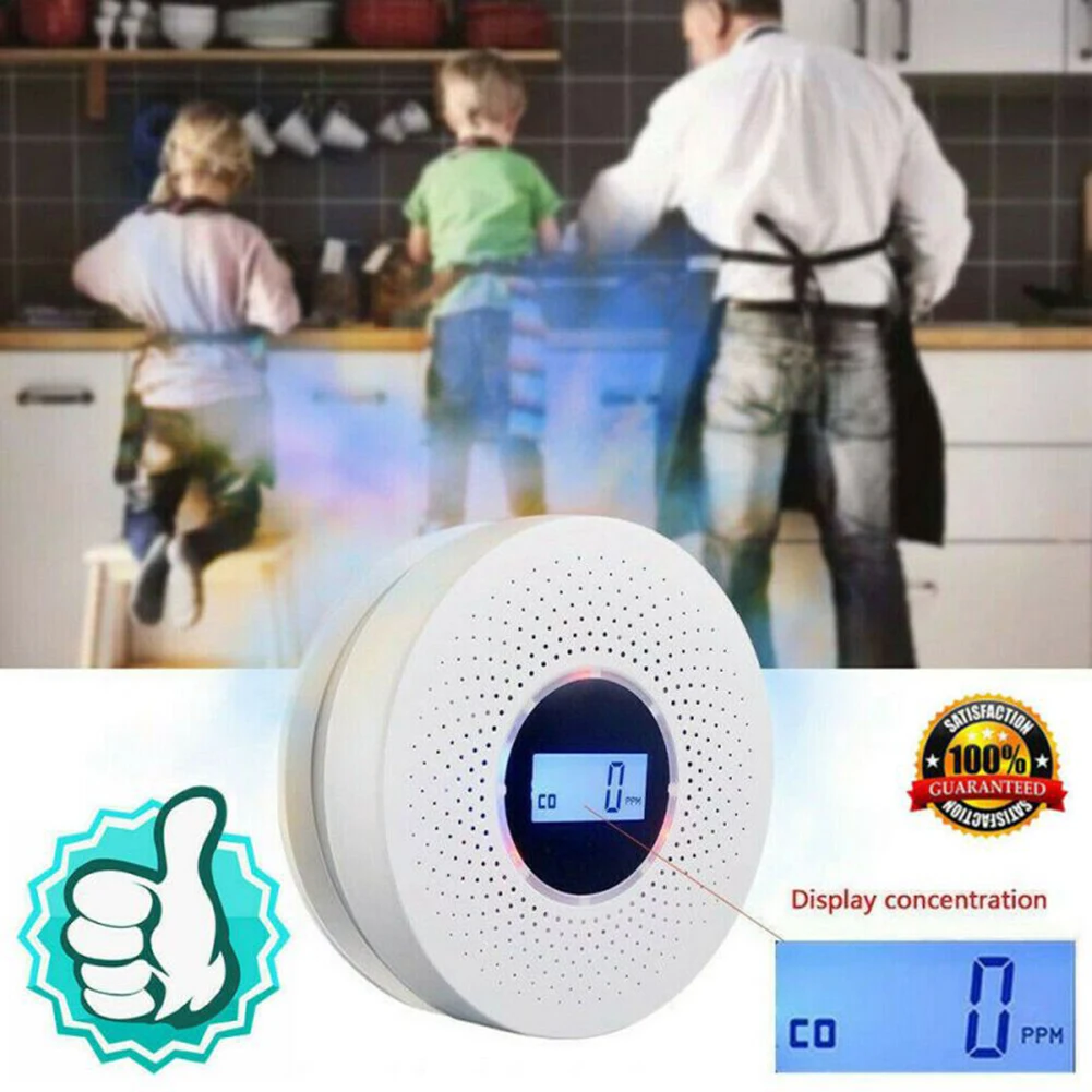 Детектор окиси углерода и дымовая сигнализация с голосПредупреждение лом ЖК-цифровой дисплей сигнализация детектор дыма датчик пожарное оборудование