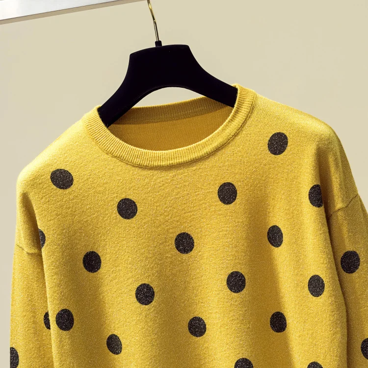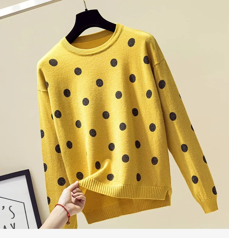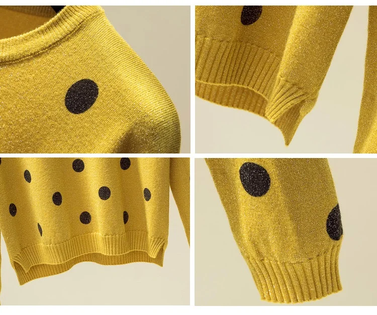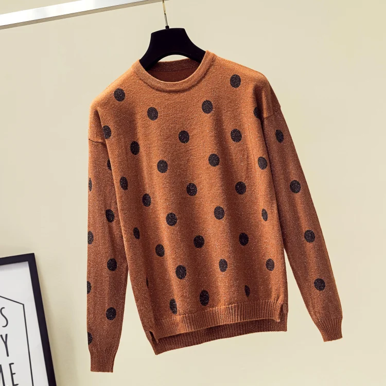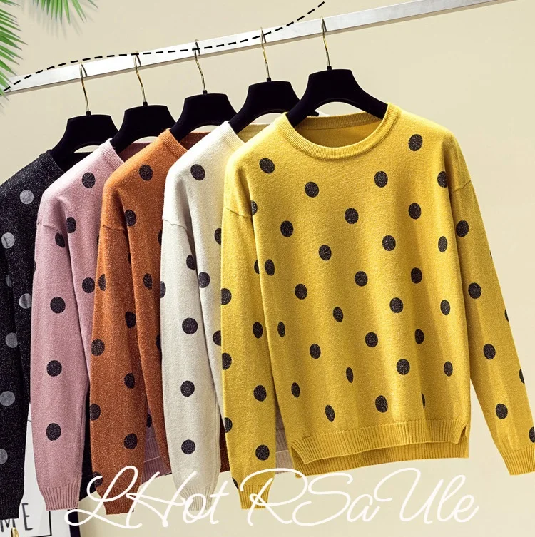 Female Loose Shiny Lurex Knit Thick Sweater Women autumn Winter Long Sleeve Pullovers Femme Round neck Soft Dot Tops jumper 2019