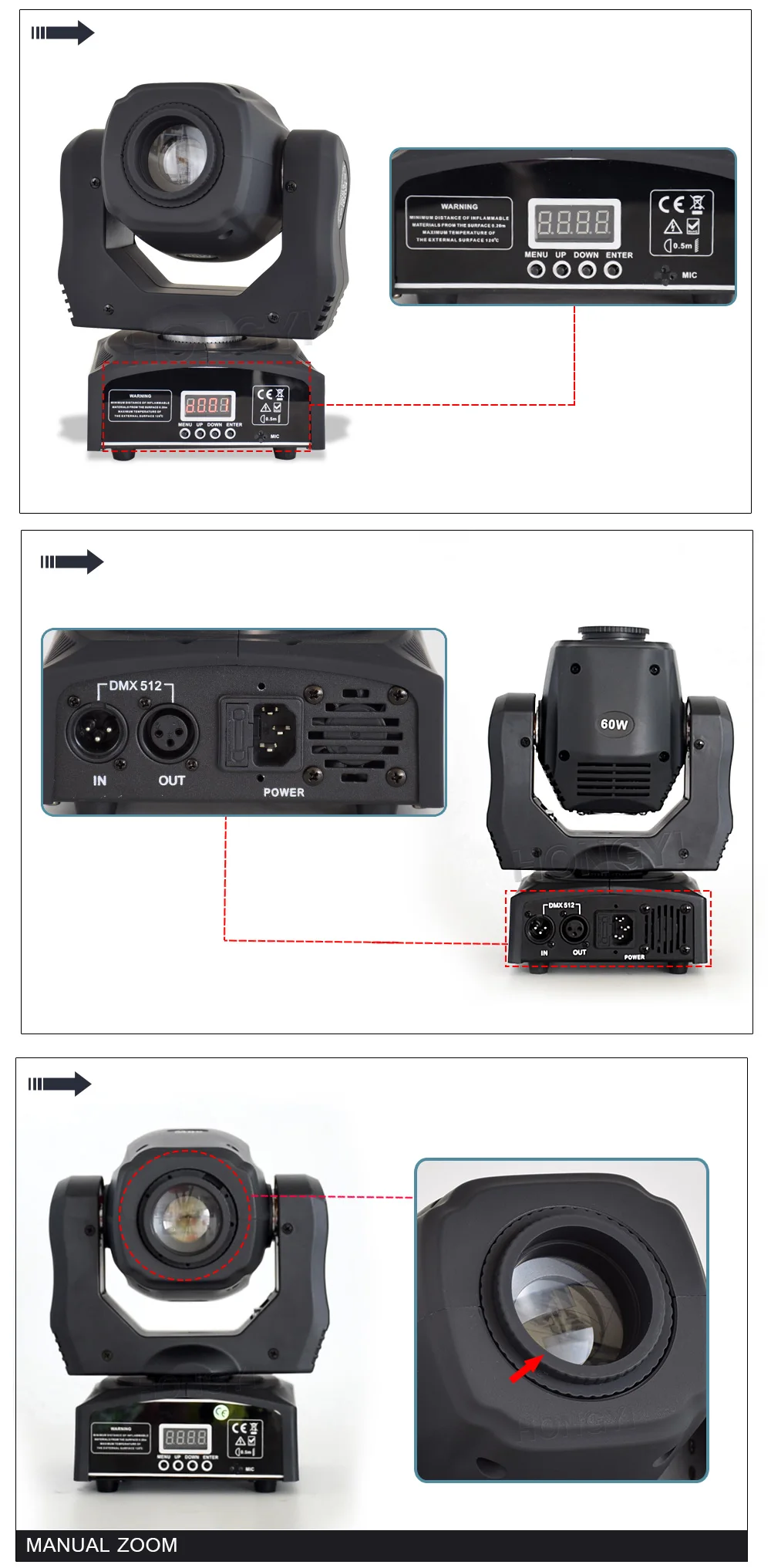 * Использование помещений: сцены, ночные клубы, дискотеки, отели, магазины, семейная вечеринка на день рождения, подходит для ди-джеев и т. Д.