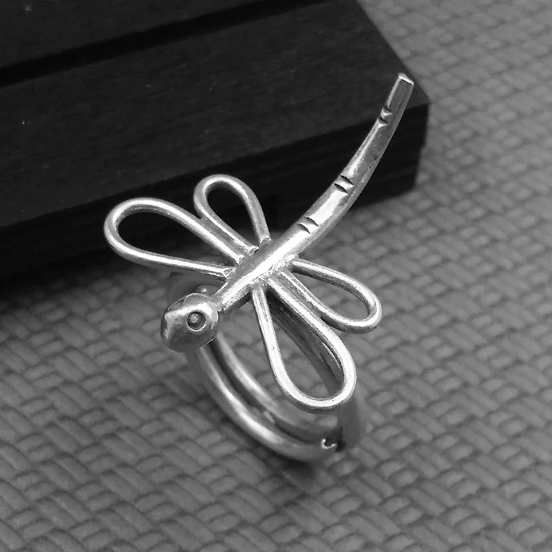 Серебро 925 ювелирные изделия круглые трендовые стрекозы открытие регулируемое серебряное кольцо подходящее событие обручальное кольцо для женщин