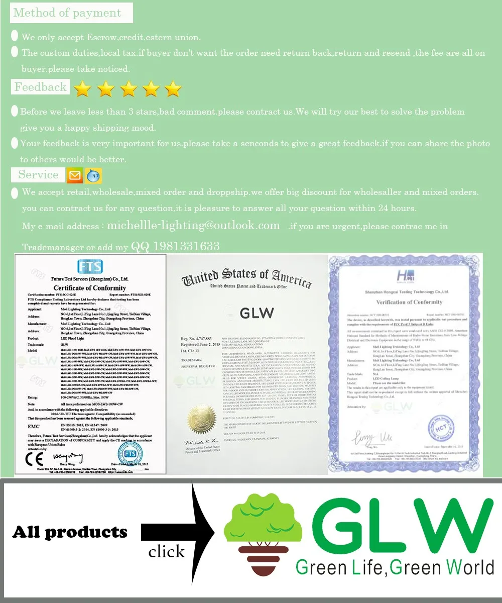 Описание продукта: Технические характеристики (1) Название: светодиодный чип Тип: COB Материал лампы: Алюминий Входное напряжение: AC 220 В (Чип на плате) Срок службы: 50000 часов Мощность: 10 Вт 20 Вт 30 Вт 50 Вт полная мощность Цветовая температура: теплый белый (3000-3200 K) Холодный белый (6000-6500 K) Размер: 60*40 мм (20-50 Вт), 26*26 мм (10 Вт) Срок службы: более 50000 часов Особенность: не нужен драйвер питания, непосредственно Подключите 220 В Прямой привод переменного тока, подходит для DIY (2) Название: полный спектр Тип: светодиодный чип COB Материал лампы: Алюминий Входное напряжение: AC 220 В (Чип на плате) Срок службы: 50000 часов Мощность: 20 Вт 30 Вт 50 Вт полная мощность Цветовая температура: полный спектр Размер: 60*40 мм Срок службы: более 50000 часов Особенность: не нужен драйвер питания, непосредственно Подключите 220 В Прямой привод переменного тока, подходит для DIY (3) 1. Тип: высокомощный COB Чип светодиодного освещения 2. Цвет: холодный белый теплый белый 3. Цветовая температура: холодный белый (6000-6500 K) теплый белый (2800-3500 K). 4. Мощность: 30 Вт 50W100W 150 Вт 200 Вт 5. Входное напряжение: AC 220 V-240 V 6. Материал корпуса: алюминий 7. Срок службы: более 10 000 часов 8. Световой поток: 4000-15000 лм 9. Особенность: не нужен драйвер питания, непосредственно Подключите 220-240 В Прямой привод переменного тока, подходит для DIY Светодиодный Способ установки: Примечание: Не изолированный! Пожалуйста, убедитесь, что ваша безопасность перед включением питания! 1. чип должен быть установлен теплоотвод монтируется для лучшего использования, после пайки, лучше всего добавить слой тепловой смазки к припою. область, где устанавливается теплоотвод, должна быть отполирована, чтобы обеспечить гладкую и гладкую поверхность. Чип требует 100% контакта с теплоотводом без каких-либо зазоров. 2. При установке и использовании чипа не нажимайте на светоизлучающую часть чипа, чтобы предотвратить повреждение источника света чипа. Особенности: 1. Низкое поколение нагрева для снижения энергопотребления 2. Экономьте деньги на затраты на электроэнергию 3. Большое снижение выбросов CO2 4. Минимизация резкого изменения климата 5. Большое снижение расходов на техническое обслуживание 6. Длительный срок службы 7. Твердотельный, ударопрочный 8. Полноспектральный светодиодный свет и угол луча 120 градусов, может обеспечить самый эффективный свет длин волн для повышения производительности фотосъемки и улучшения здорового роста пловцов. Широко используется в дорожном движении/ландшафте/рекламе/помещении/архитектурном/художественном освещении