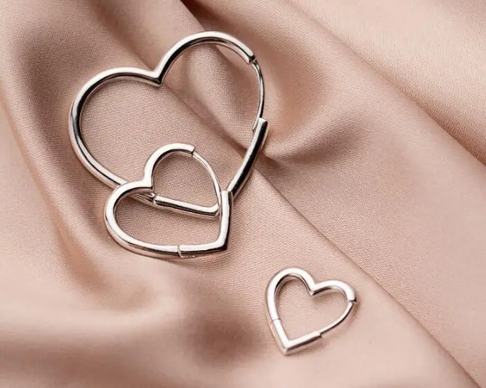 Название: Настоящий. 925 пробы серебряные глянцевые серьги в форме сердца Huggie, ювелирные изделия, GTLE2830
