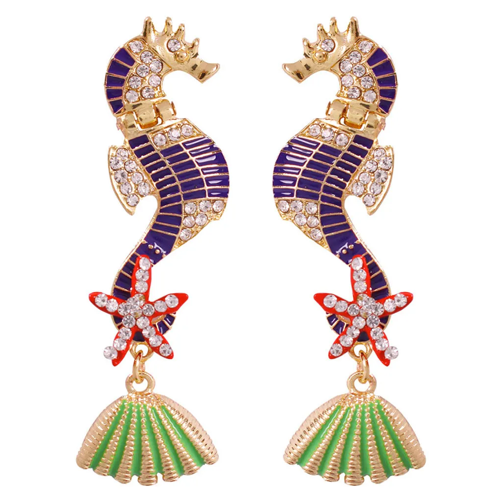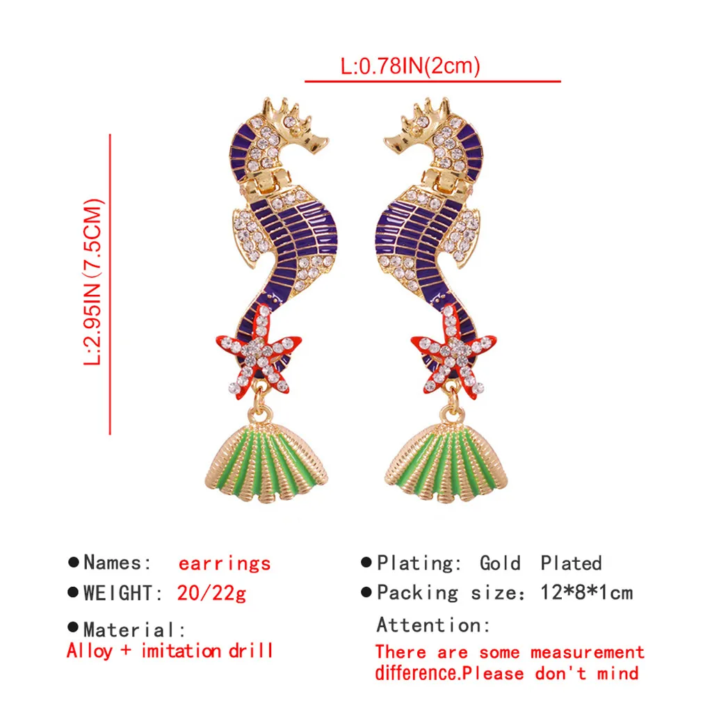 Серьги гиппокамп в богемном стиле с алмазным животным геометрическим узором женские ювелирные изделия