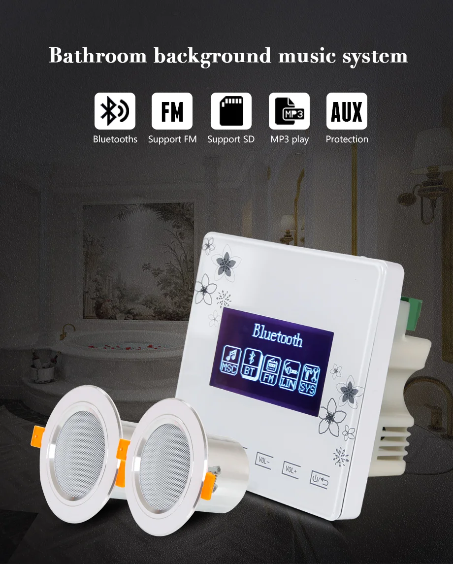 Bluetooth портативные колонки водонепроницаемый потолочный динамик bluetooth в стену усилитель для ванной фоновая музыкальная система с USB