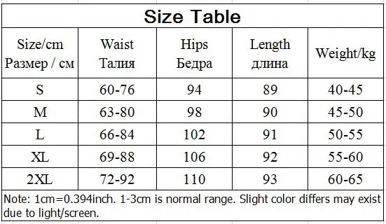 | Размер/см | Талия | Бедра | Длина | Вес/кг |