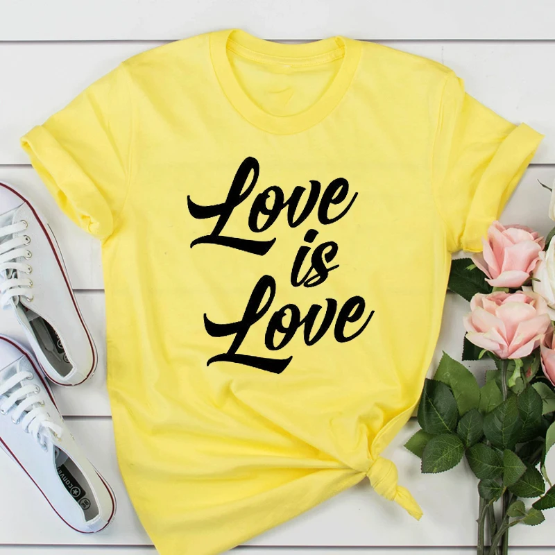 Женская футболка с надписью Love Is Love, футболка с короткими рукавами из чистого хлопка с принтом LGBT, летняя футболка Ulzzang Feminism, Прямая поставка