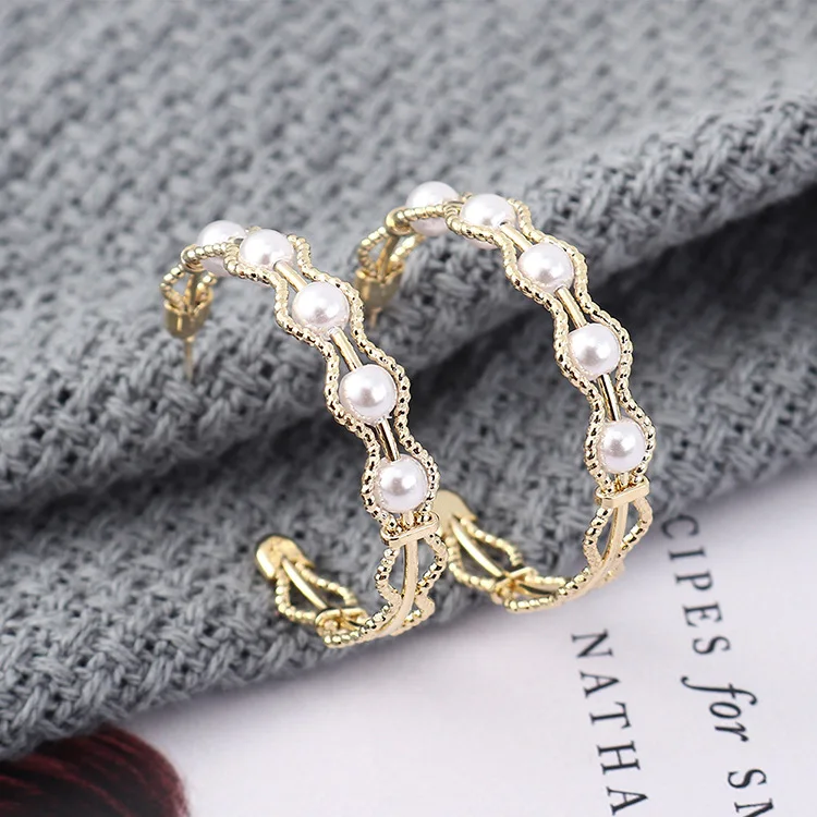 В Корейском стиле; модная, жемчужная серьги S925 стерлингового серебра иглы Кафф Перфорированный Круглый волна серьги на крючках C-shape форме, благодаря чему создается ощущение невесомости с сережки Ювелирные изделия