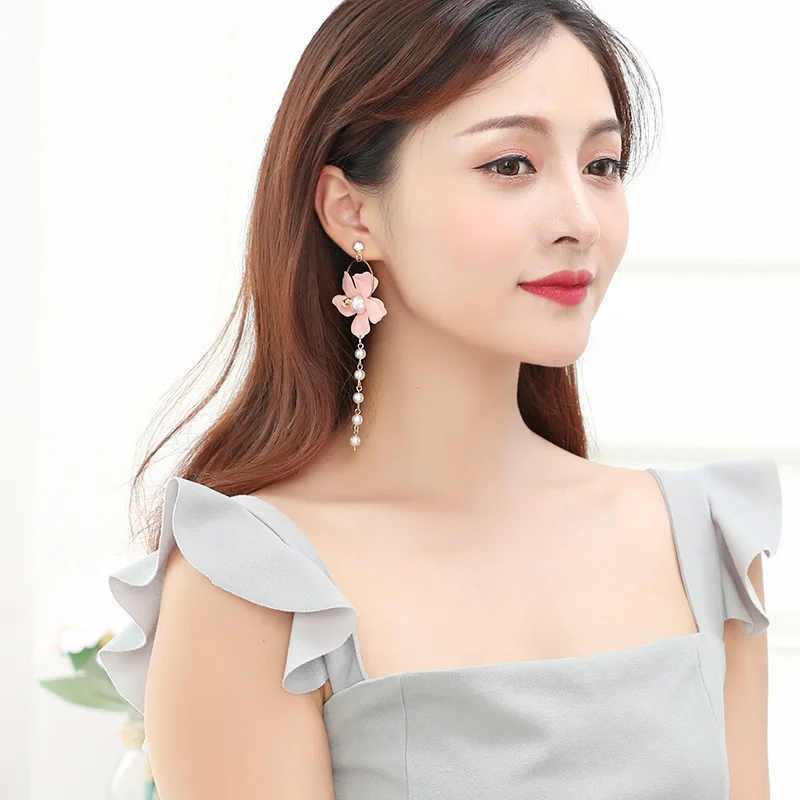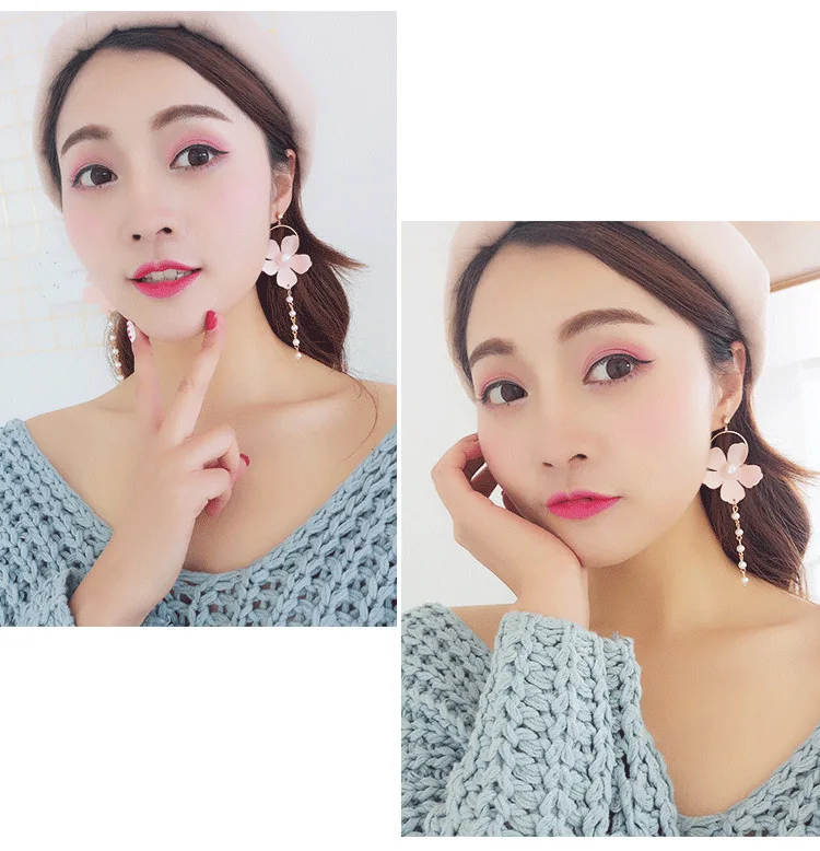 Корейская версия милых женских лепестков жемчужная кисточка длинные Круглые