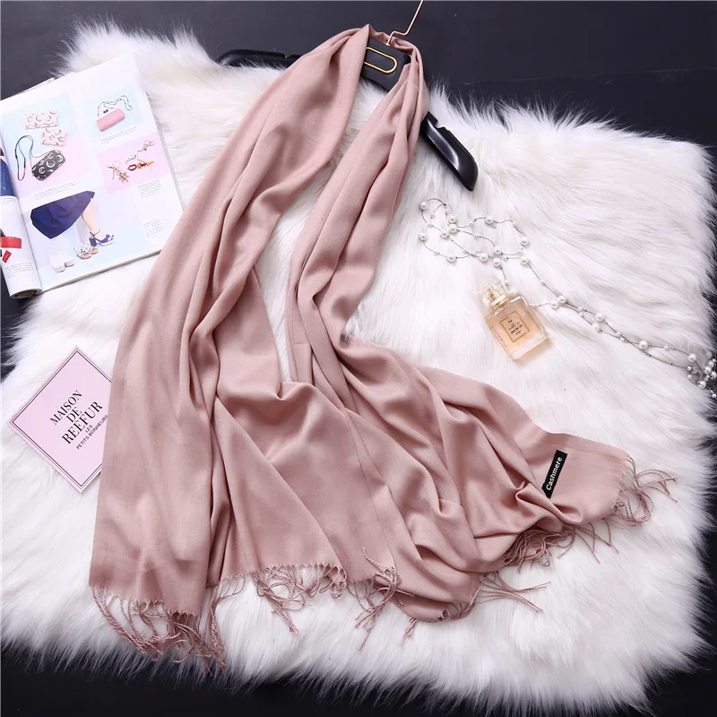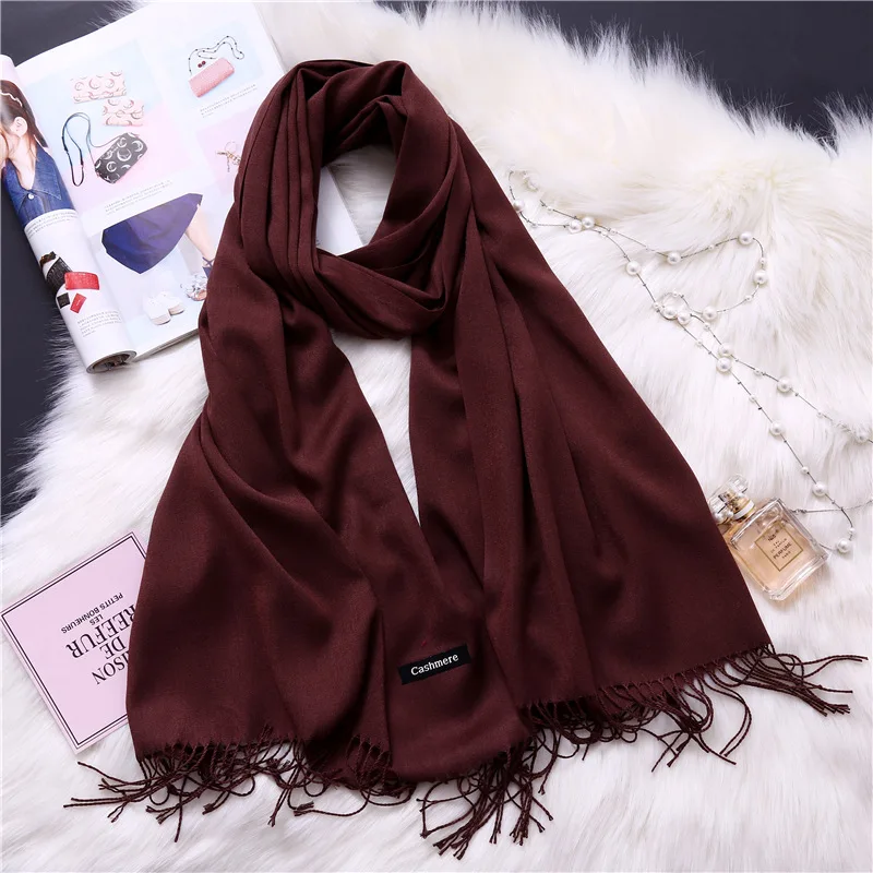 Luxury Brand Women soild color Cashmere Scarf winter long wool Pashmina Shawls and Wraps Female Foulard Hijab warm Head Scarves