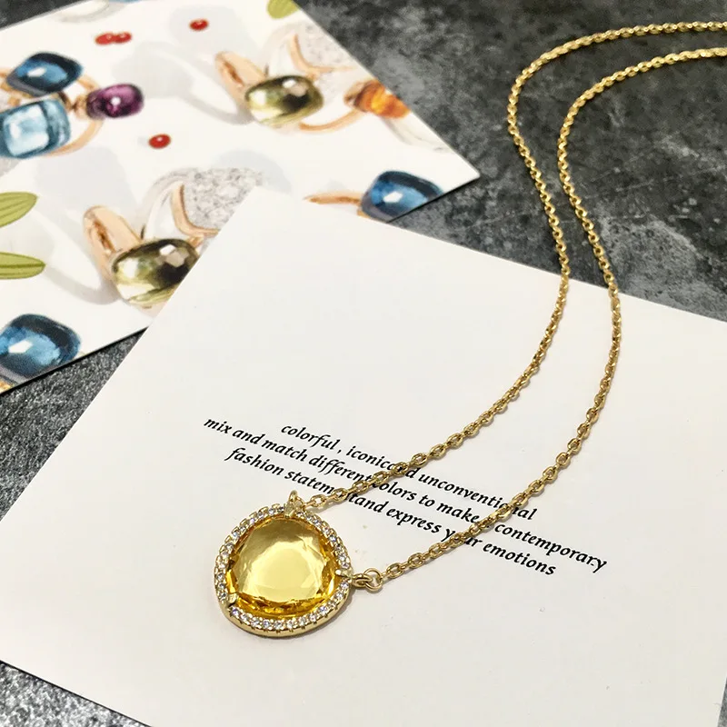 Veryins желтое золотое покрытие медное стекло круглая подвеска ореол ожерелье для женщин Повседневная одежда 45 см цепь