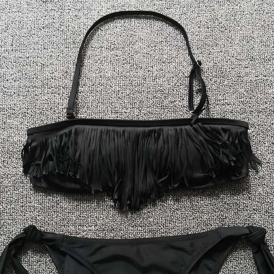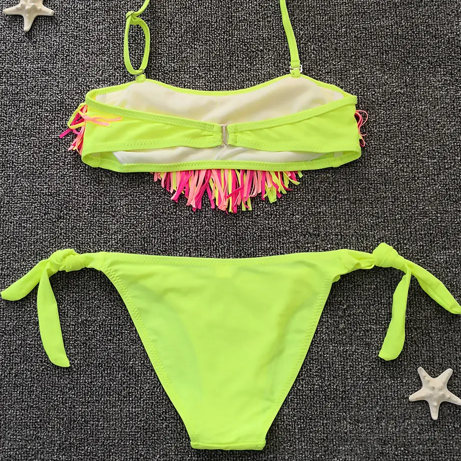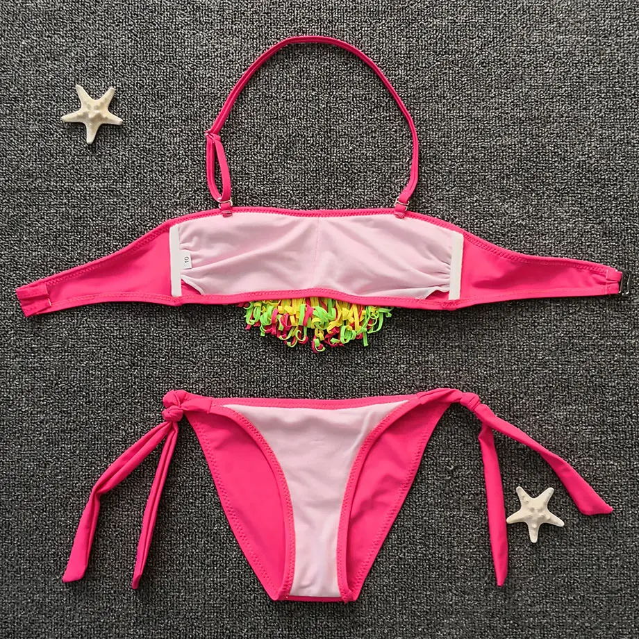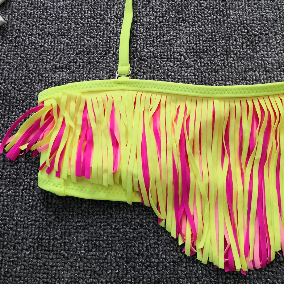 2019 Teenage Girl Bikini Kids Tassel Fringe Girl Swimsuit Split Two Piece Children Swimwear Big Girl Swimming Beach Bathing Suit