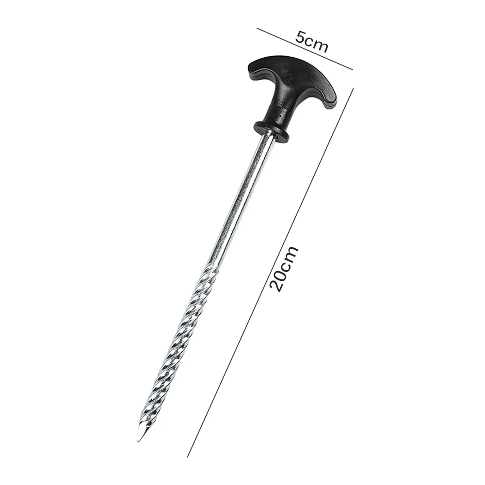 Спиральная конструкция палатки колышка с острым наконечником и утолщенным длинным ногтевым корпусом может легко вставляться в землю. Колышки для палаток подходят для замороженной почвы и ледяной поверхности. Острый кончик колышка для палатки был тщательно закрыт, чтобы не повредить вас в аварии.