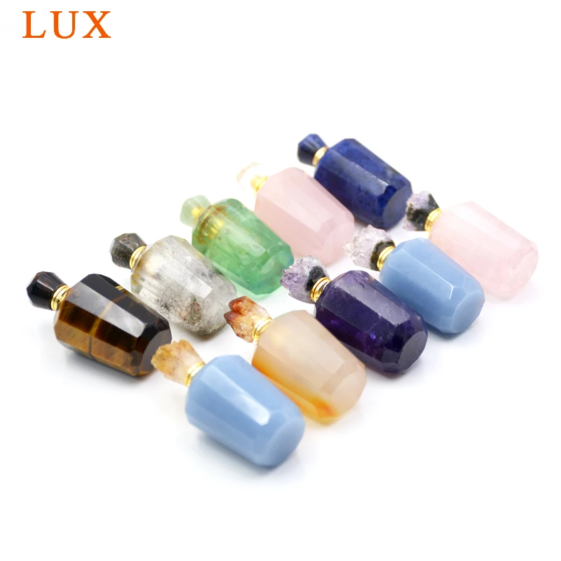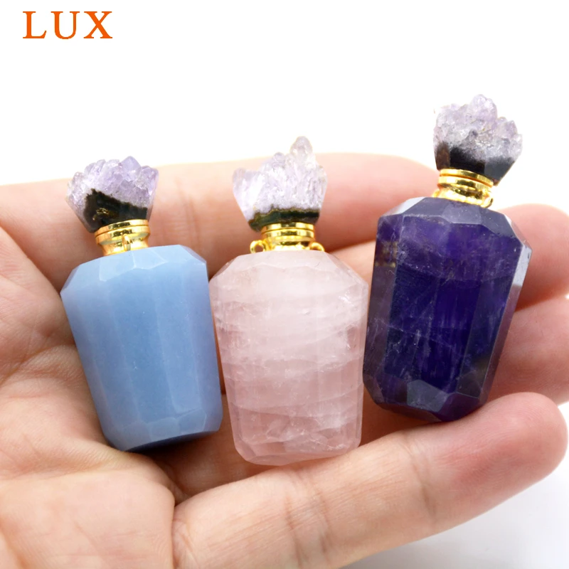 Натуральный розовый кварц аметист драгоценные камни эфирные масла флакон духов Агат druzy шапки кулон с палкой lapiz тигр ожерелье глаза